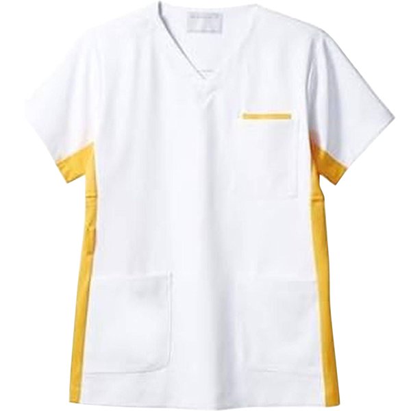 スクラブ(男女兼用・半袖) LL 白/イエロー 72-945