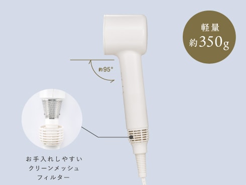髪との距離を感知して表面温度を約50℃以下の低温にキープ。吹出口に距離が近づきすぎると自動でヒーターオフ(冷風)。髪と地肌のダメージが気になる時や、暑い時期、小さなお子様の髪のドライにおすすめ。