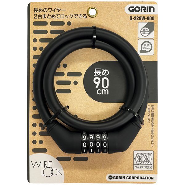 • ゴリン 可変ダイヤル式ワイヤー錠900mm BK G228W-900K
