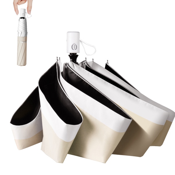 折りたたみ傘 弧長107cm 晴雨兼用 6本骨 自動開閉式 遮熱・遮光・UVカット機能 ベージュ× ホワイト B16GCQBi