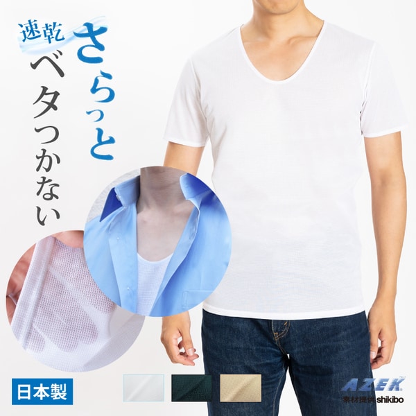 涼風 Vネック インナー 肌着 夏 半袖 メンズ 日本製 アゼック 通気性 速乾 軽量 涼しい ドライタッチ フラットシーマ クイックドライ ホワイト L 22SS0001