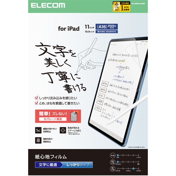 エレコム ELECOM iPad A16 11インチ / 第10世代 10.9インチ フィルム 文字用 紙のような描き心地 アンチグレア しっかりタイプ 指紋防止 気泡防止 反射防止 マット TB-A25RFLAPNH の 商品概要