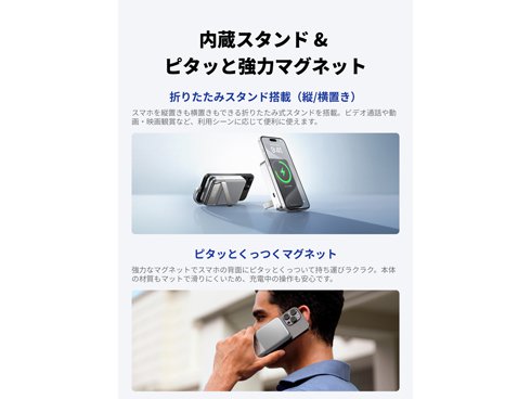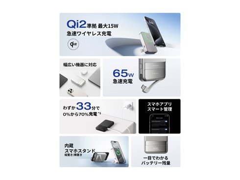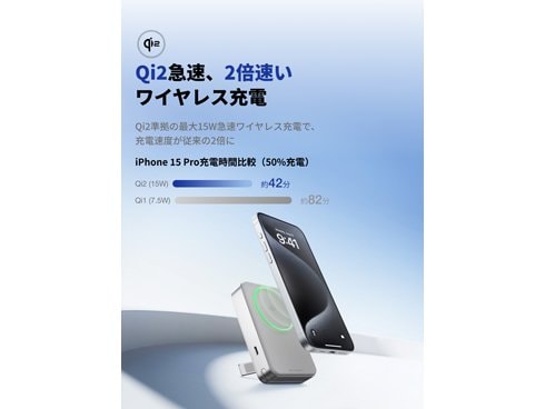 Qi2急速ワイヤレス充電対応モバイルバッテリー。