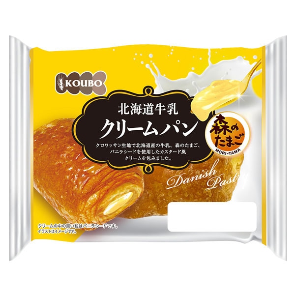おいしさ長持ち、買い置きに便利なロングライフパンです。クロワッサン生地で北海道産の牛乳を使用したクリームを包みました。
