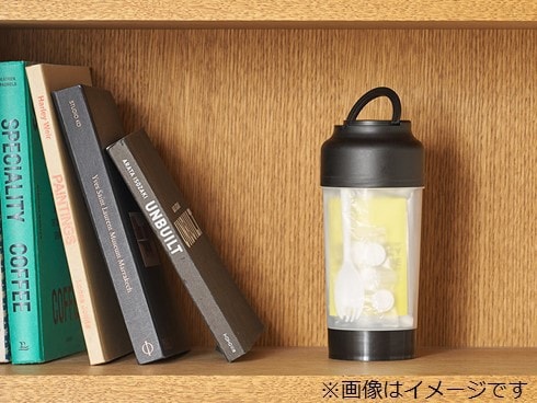 ボトルは日常生活になじむシンプルなデザインで防災グッズケースとしても使用でき、他にもドリンクボトル、ランタンの4WAYで使用できます。