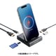 スマートフォンなどを、充電しながら大画面で視聴・プレイできる、スマホスタンド型ドッキングステーションです。USB-AポートやSDメモリーカードスロットなど計6ポートを搭載し、映像視聴からビジネスまでさまざまなシーンで作業を効率化できる1台です。