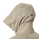 フードはヘルメットに対応する大きさで、サイドと後ろの締め込みで調節が可能です。