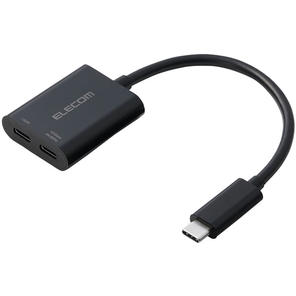 エレコム ELECOM USB-C 変換アダプタ 100W PD急速充電 4K映像出力 USB Type-C to Type-C×2 高速データ転送 ブラック MPA-C2CPD100BK の 商品概要