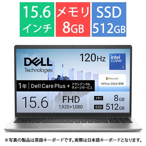 デル DELL ノートパソコン/Dell 15 DC15250/15.6型/Core 3 100U/メモリ 8GB/SSD 512GB/Windows 11 Home/Office Home & Business 2024+Microsoft 365 Basic/プラチナシルバー ND25-FWHBSCYD の 商品概要
