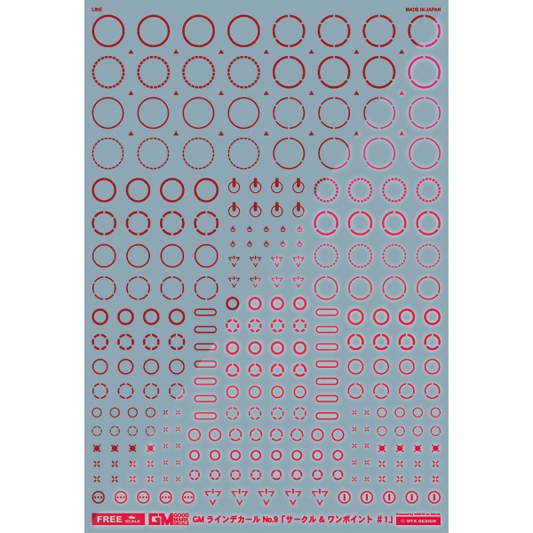 GM-856 FREE GM ラインデカール No.9 サークル&ワンポイント #1 レッド&ネオンレッド [プラモデル用品]