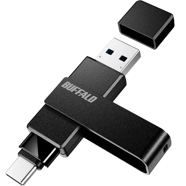 バッファロー BUFFALO USB 3.2(Gen1) Type-C/Type-A両対応 回転式USBメモリー 128GB ブラック RUF3-ACR128G-B/C の 商品概要