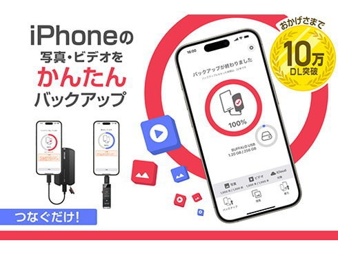 本商品は、バッファローアプリ「写真バックアップ」(無料)に対応。大切な思い出をもっと簡単に保存できます。