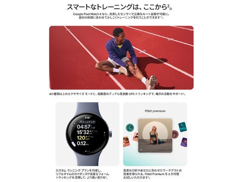 1 Google アプリは、国や言語によっては利用できない場合があります。Google Pixel Watch 4 は、Android 11.0 以降を搭載したほぼすべてのスマートフォンに対応しています。Google アカウントと Google Pixel Watch アプリが必要です。機能によっては Fitbit モバイルアプリや Fitbit Premium の定期購入が必要な場合があります。技術仕様とスマートウォッチの仕様について詳しくは、g.co/pixelwatch/specs をご覧ください。