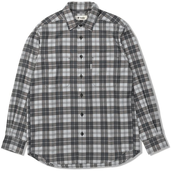 微起毛した吸汗速乾素材トランスウェットサーマルを使用した中厚タイプのチェックシャツ。杢調で温かみのあるチェック柄が特徴です。下前立てに毛ばり柄のワンポイント刺しゅう入り。