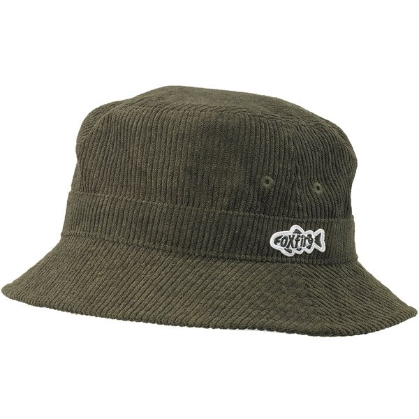 Foxfireの文字で魚を模ったワンポイントワッペン付き太畝コーデュロイハット。畳んでポケットやバッグに収納できるクラッシャブル構造です。スベり背面側の頭囲サイズ調整アジャスターによりマイナス2cmまでをカバーします。