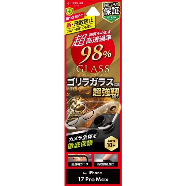 ルプラスネクスト LEPLUS NEXT iPhone 17 Pro Max用 レンズ保護ガラスフィルム「GLASS PREMIUM FILM」全面保護 ゴリラガラス 3眼 一体型 高硬度10H 超高透過 約98% 指紋防止 LN-IL25FGLENOC の 商品概要