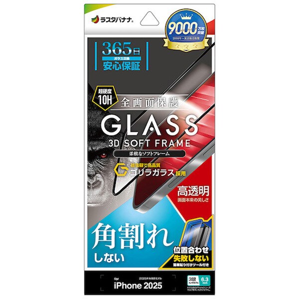 ラスタバナナ RastaBanana iPhone 17 Pro用 ガラスフィルム 全画面保護 角割れしない ゴリラガラス 高光沢 治具付き 0.33mm 硬度10H SGG4939IP5B の 商品概要