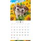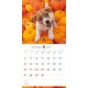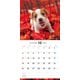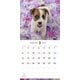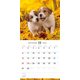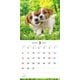 カラフルな花や植物に囲まれた、子犬のキュートな表情をクローズアップしたカレンダー。