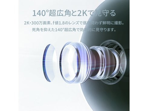 2K・300万画素、f値1.8のレンズで昼夜問わず鮮明に撮影。死角を抑えた140°超広角で効率的に見守ります。