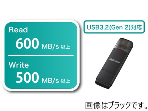 SSDとUSB3.2(Gen2)対応により、「読み込み:約600MB/s 以上」「書き込み:約500MB/s以上」の高速なデータ転送を実現。容量の大きな動画や画像ファイルをたくさんやり取りする際にも、快適にお使いいただけます。