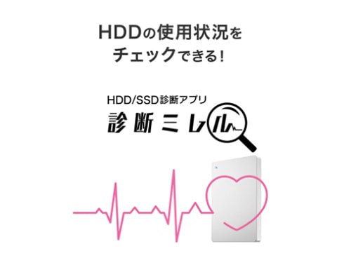 HDDは劣化した状態で使用し続けると故障につながるため、定期的にHDDを買い替える必要があります。「診断ミレル」はHDDの使用状態をチェックできるWindows専用アプリです。HDDの状態を定期的に確認することで、お客様ご自身で買い替え時期の目安を知ることができます。