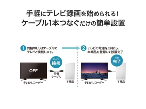 • 手軽にテレビ録画を始められる!ケーブル1本つなぐだけの簡単設置