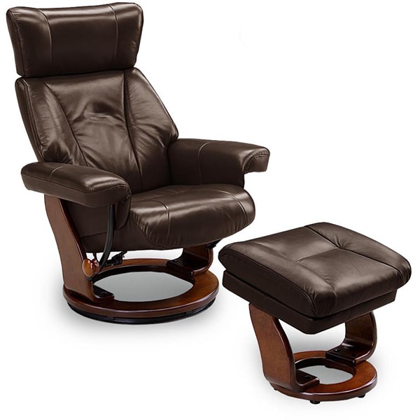 ヘッドレストの高さと角度を調整できるリクライナー。360度回転式リクライニング機能付き、オットマンには収納スペースがある多機能チェアです。別売りのサイドテーブルも取り付けできます。