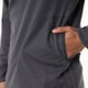 レイヤードによるごろつきをなくすためにラグランスリーブを採用し、バックパックのヒップベルトの干渉をなくすためにポケット位置を少し高く、そして裾回りはドローコードとコードロックをなくしてすっきり仕上げています。