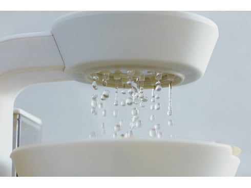雨を降らせるイメージで設計された上部12カ所の[ドリップ口]。ドリップに最適な温度まであたためられたお湯が、コーヒー粉に満遍なくいきわたり、抽出ムラがおきにくく、おいしいコーヒーになります。