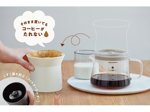 フィルターホルダーは、ドリップ後に単体でテーブル上においてもしずくが漏れないようになっています。受け皿などを用意する必要もなくテーブルの上に直接置けるので、コーヒーのサーブもスムーズです。