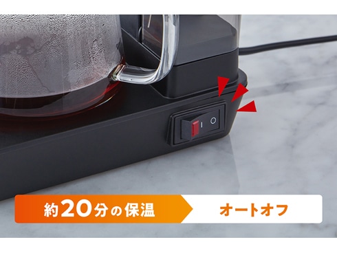 ドリップが終わったら自動で保温開始。20分経過すると電源が切れる「オートオフ機能」付きで安心です。