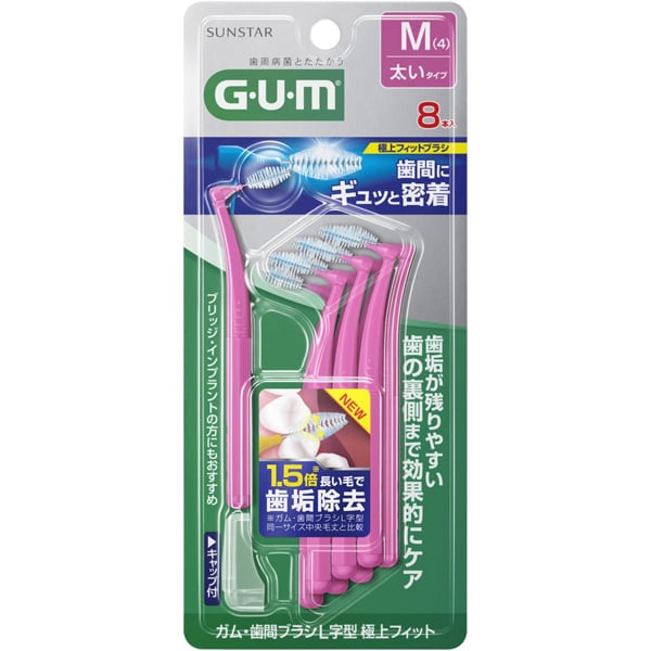 サンスター GUM(ガム)歯間ブラシ L字型 極上フィット ワイヤータイプ M(4)8本入 [奥歯の歯間 歯の隙間 すき間 歯の裏側 ケアブリッジ インプラントの方に ハグキにやさしい バレルカット タル型 樽型] に関するレビューとQ&A