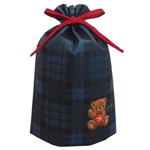 かわいいくまのイラストがポイントのギフトバッグ。落ち着いた色合いで色々な方のプレゼントに使えます。ギュッと絞るだけで簡単な巾着タイプ。