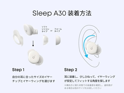 Anker 睡眠時特化型完全ワイヤレスイヤホン Soundcore Sleep A30 Bluetooth対応 アクティブノイズキャンセリング/適応型ノイズキャンセリング搭載 いびきマスキング機能 オフホワイト D1301N21 に関するレビューとQ&A