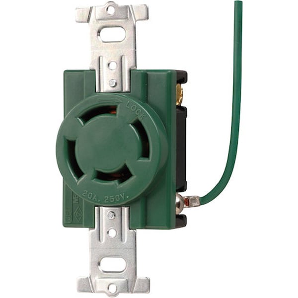 ●接地3P 20A 引掛埋込コンセント(接地リード線付)(緑)