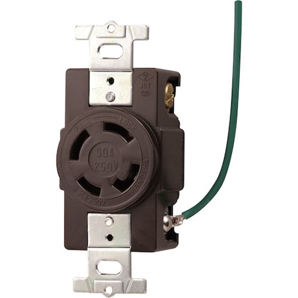 ●接地 2P 30A 引掛埋込コンセント(接地リード線付)(チョコ)