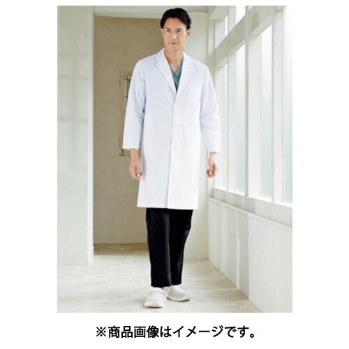 ベーシックな三つボタンの男性用シングルドクターコート(診察衣)は、シンプルなデザインで着心地の良い素材を使用しました。