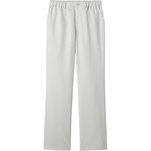 しゃがむ動作など、動きが多い職種の方に向けた男女兼用のストレートシルエットパンツです。脇ゴムでウエスト周りは窮屈感がなく、ゆとりのある履き心地になっています。さまざまな体型の方が着用できるようにサイズ展開も豊富です。機能性抜群で、一日中快適な履き心地のストレートパンツです。高いストレッチ性を実現した、ストレートシルエットの男女兼用パンツ。腰部分はニット生地のジアスムースを採用し、引っ張られずに伸びるので、動きやすく快適。