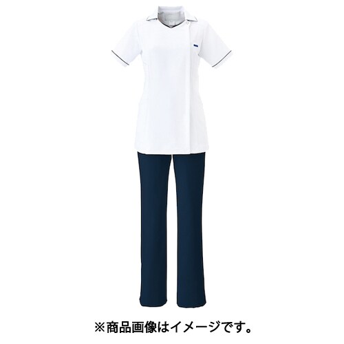 白衣と同じ白のジップスクラブ。白単色ではなく差し色にネイビーの切り替えが清潔感があり、デザインポイントになっています。