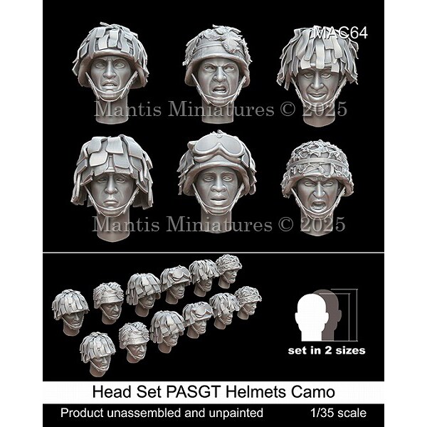マンティス Mantis Miniatures MAC64 1/35 現用 アメリカ 偽装付PASGTヘルメット ヘッドセット 6種類2サイズ 12個入 の商品スペック
