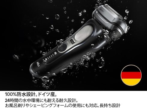 シリーズ9 PRO+男性用電気シェーバーは、細部にまでこだわった高品質素材を使用し、耐久性テスト済みです。100%防水設計で、ウェットシェービングとドライシェービングの両方に対応しています。最大60分の連続稼働が可能なリチウムイオン電池を搭載しています。