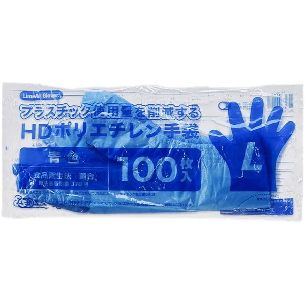 LimeAir Gloves HDポリエチレン手袋 L 100枚 ブルー