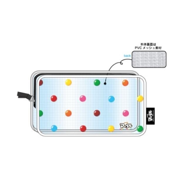 お菓子の「マーブル」柄のクリアポーチです。おなじみのお菓子のパッケージデザインをビニール素材のポーチに落とし込みました。マチもしっかりついているので旅行の際のコスメポーチなどにぴったりです。