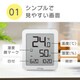 温度・湿度・日付・時刻を同時に表示することができる 湿度状態を顔マークでお知らせ