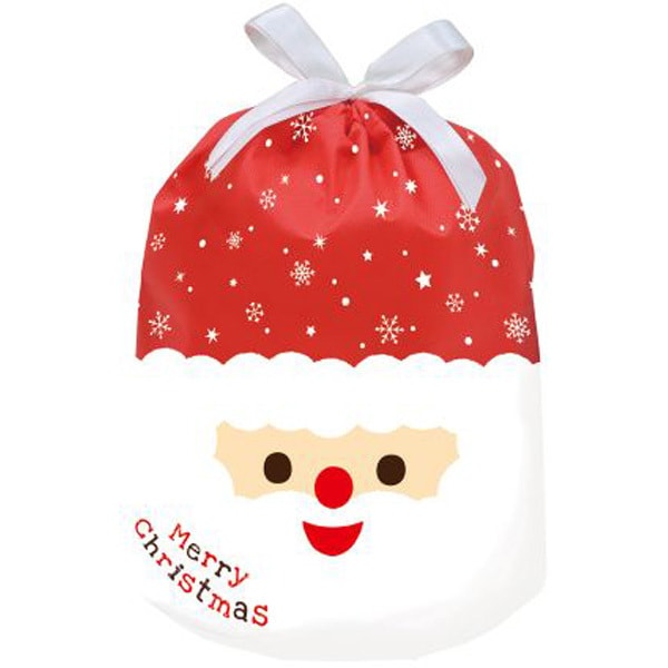 【限定】 ギフトバッグ 巾着 サンタフェイス アカ 幅450mm CD071