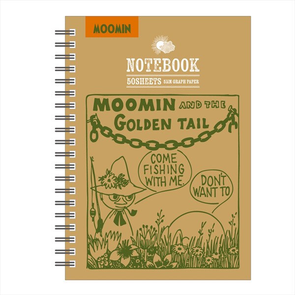 ムーミンコミックの1コマを使用したクラフトベースのシンプルなデザイン。スナフキンと、ムーミンのおしりがのぞいています。使いやすい5mm方眼ノートはスナフキンの後ろ姿がワンポイントではいっています。