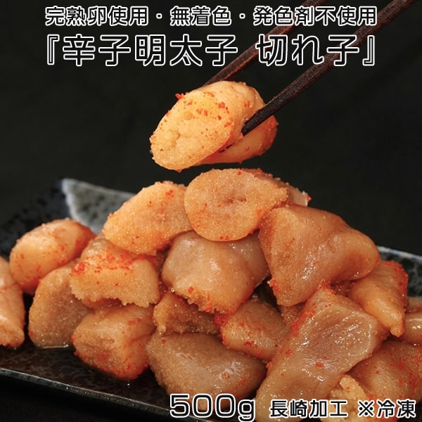『辛子明太子 切れ子』 500g 完熟卵使用・無着色・発色剤不使用 長崎加工 ※冷凍