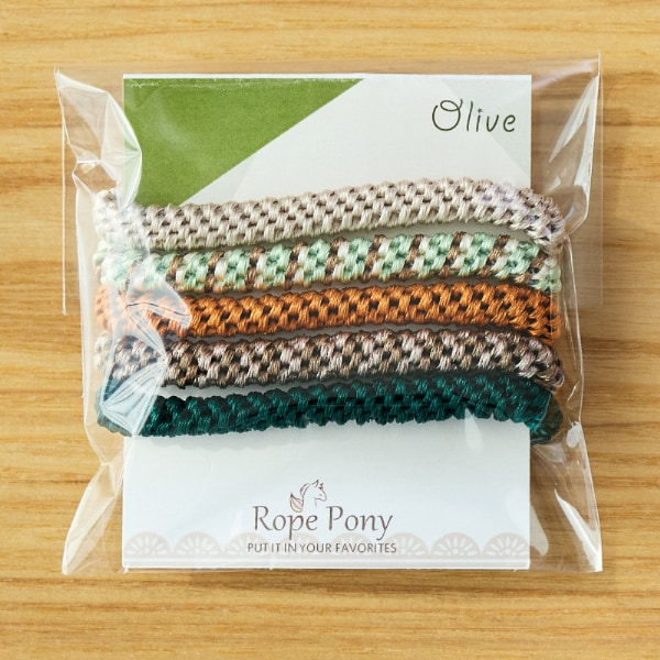 • ロープ編み風の跡が付きにくい5本入りヘアゴム。その日の気分によって使い分けて一日のスタートに。