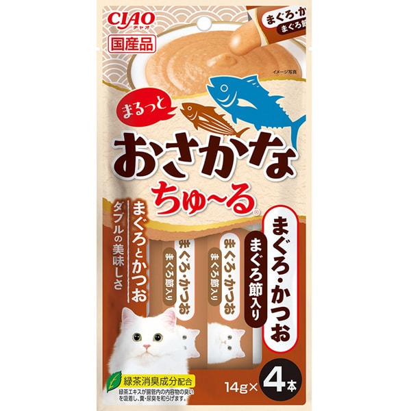 まるっと おさかなちゅーる まぐろ かつお まぐろ節入り 14g×4P [キャットフード 猫用スナック 猫用おやつ]