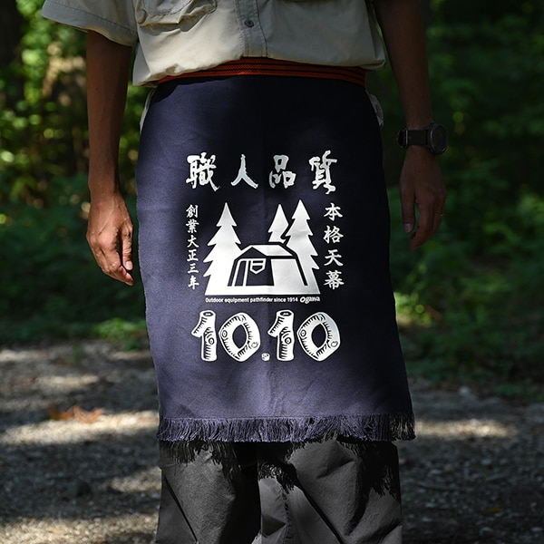 創業110年越えならではのクラシカルなデザインの前掛け。綿×レーヨン素材で、軽くて扱いやすい前掛けです。前掛けとして、キャンプや普段使いに、小さなタペストリーとしてサイトやお部屋のアクセントにもなります。